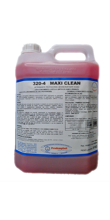 MAXI CLEAN é um produto destinado à desoxidação e restauração em peças de alumínio, plásticos e PVC, evitando os processos de jateamento, que podem danificar a peça e obstruir tubulações. Super concentrado, elaborado com poderosos tensoativos; não evapora, não é inflamável, sendo totalmente solúvel em água.